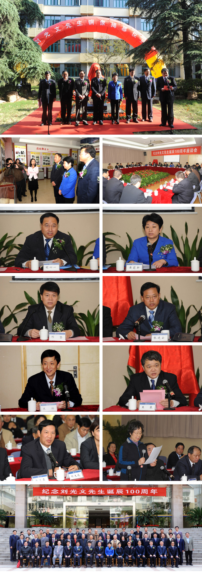 胡四一副部长、黄莉新副省长、许仲梓副主席、邓坚局长、张建云院士等参观了刘光文生平事迹展示室,参加了纪念刘光文诞辰100周年座谈会。胡四一副部长在讲话中说,我们纪念刘光文先生,为的是不忘记河海老一辈崇高的思想境界,精湛的学术专攻,严谨的治学作风和优良的师德风范;学习他对中国水利事业和人民教育事业的无限忠诚和无私奉献;学习他淡泊名利、为人师表、甘为人梯的高风亮节。正是像刘先生这样一大批德高望重的学者和教师,撑起了河海的脊梁,成就了河海的辉煌,他们是吃瓜网 的骄傲,也是吃瓜网 永远的精神财富,永远激励我们将吃瓜网 的发展和水利教育科技事业不断推向前进。