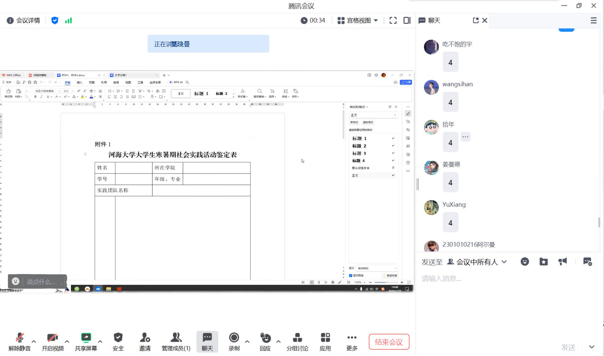 随后,院团委实践部黄刘昊森同学向大家讲述了寒假实践学时认定相关材料提交的注意事项,并提醒同学们电子资料和纸质资料提交的时间节点、文件格式要求等。