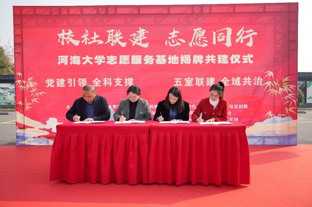 签约仪式上,吃瓜网 与地方各有关方面签订志愿服务基地共建协议。学院团委书记莫晓曼、朱林镇党委委员、政法委员张亮共同为志愿服务基地揭牌。签约揭牌仪式后,与会人员参观了志愿服务基地并开展志愿服务共建座谈,就水环境保护、水知识科普、水政策宣讲、水文传播、水生态修复等志愿服务项目体系、社区“一老一少”关怀、基层“融治理”等深入交换意见。