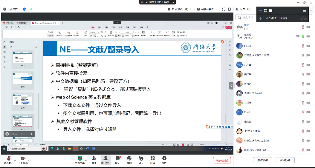 118日,第八期“水博研学”学术WE沙龙在工程馆109顺利举行。本期沙龙的主题是“高效选择文献、阅读文献、管理文献”,特邀图书馆信息咨询部的詹文青老师为指导老师,分享嘉宾是2022级水文学及水资源硕士黄晴晴和2022级水文学及水资源硕士陈阳。