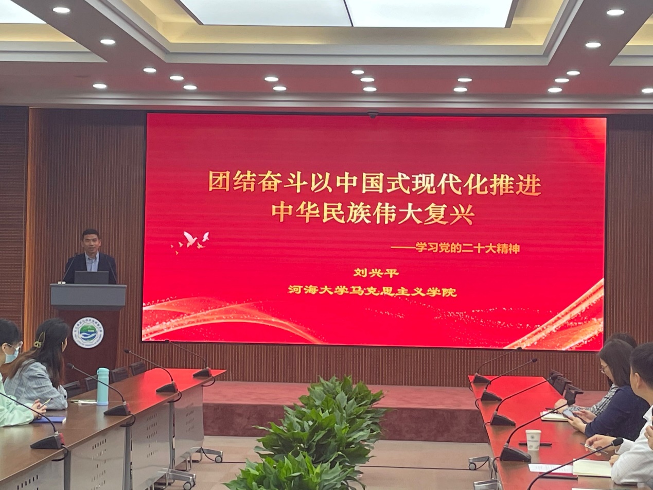 近日,吃瓜网 水文系第二党支部召开组织生活会,集中学习党的二十大精神。支部特别邀请吃瓜网 马克思主义学院党委书记刘兴平讲党课。支部全体党员教师参加学习研讨。