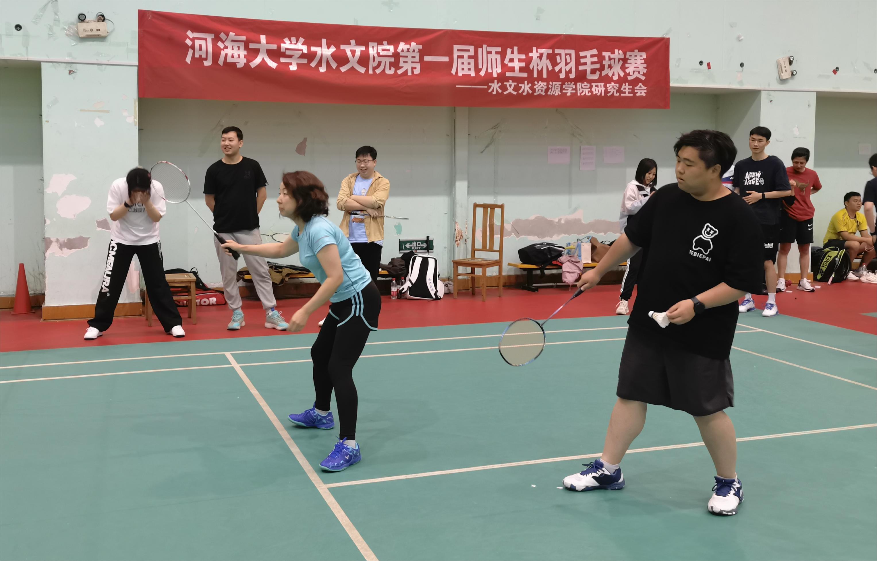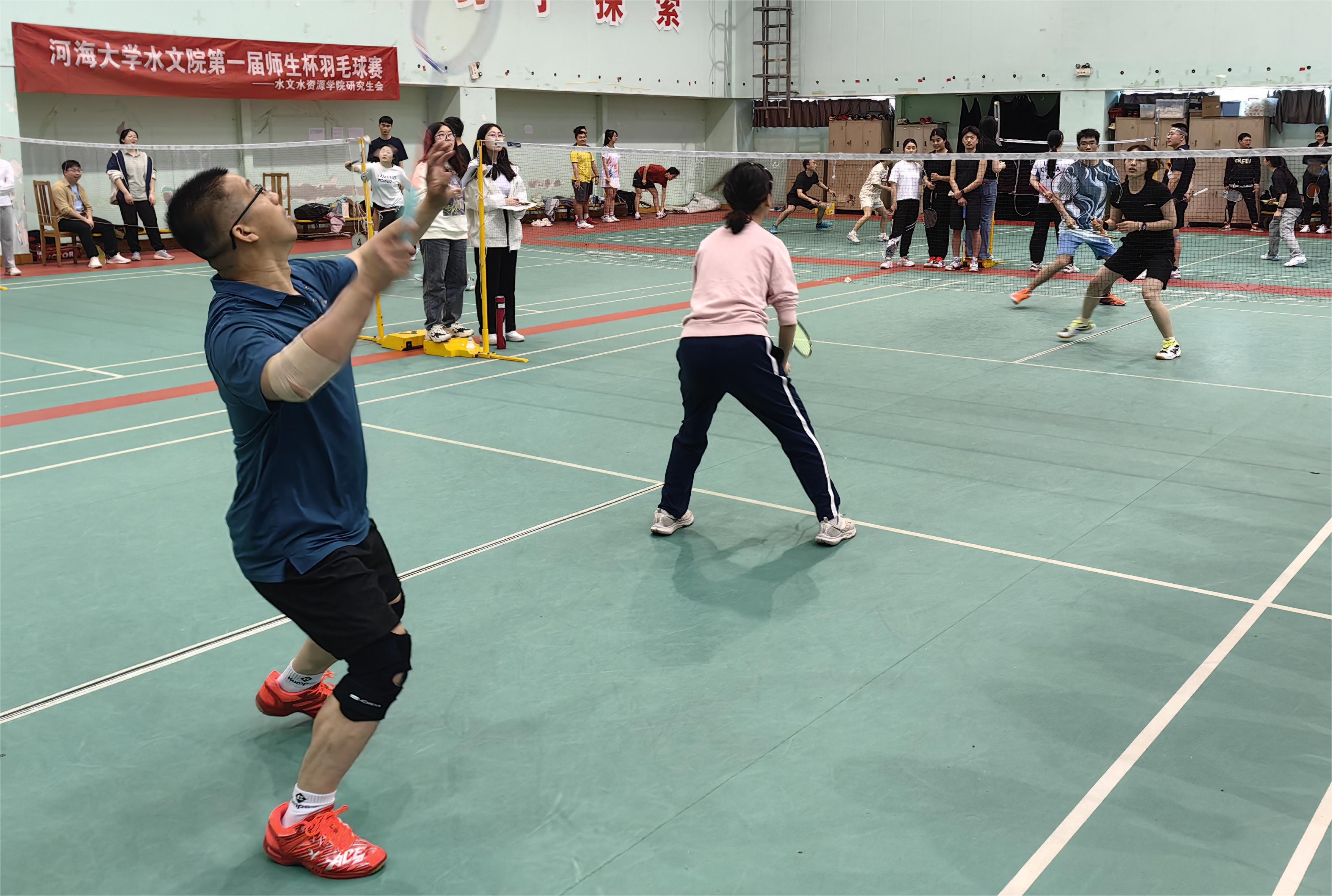 4月22日,由水文院分工会和院研究生会联合举办的第一届“师生杯”羽毛球赛如期举行。本次比赛鼓励以课题组为单位进行报名,每队邀请至少1名老师加盟,共组成12支队伍80人参加比赛。
