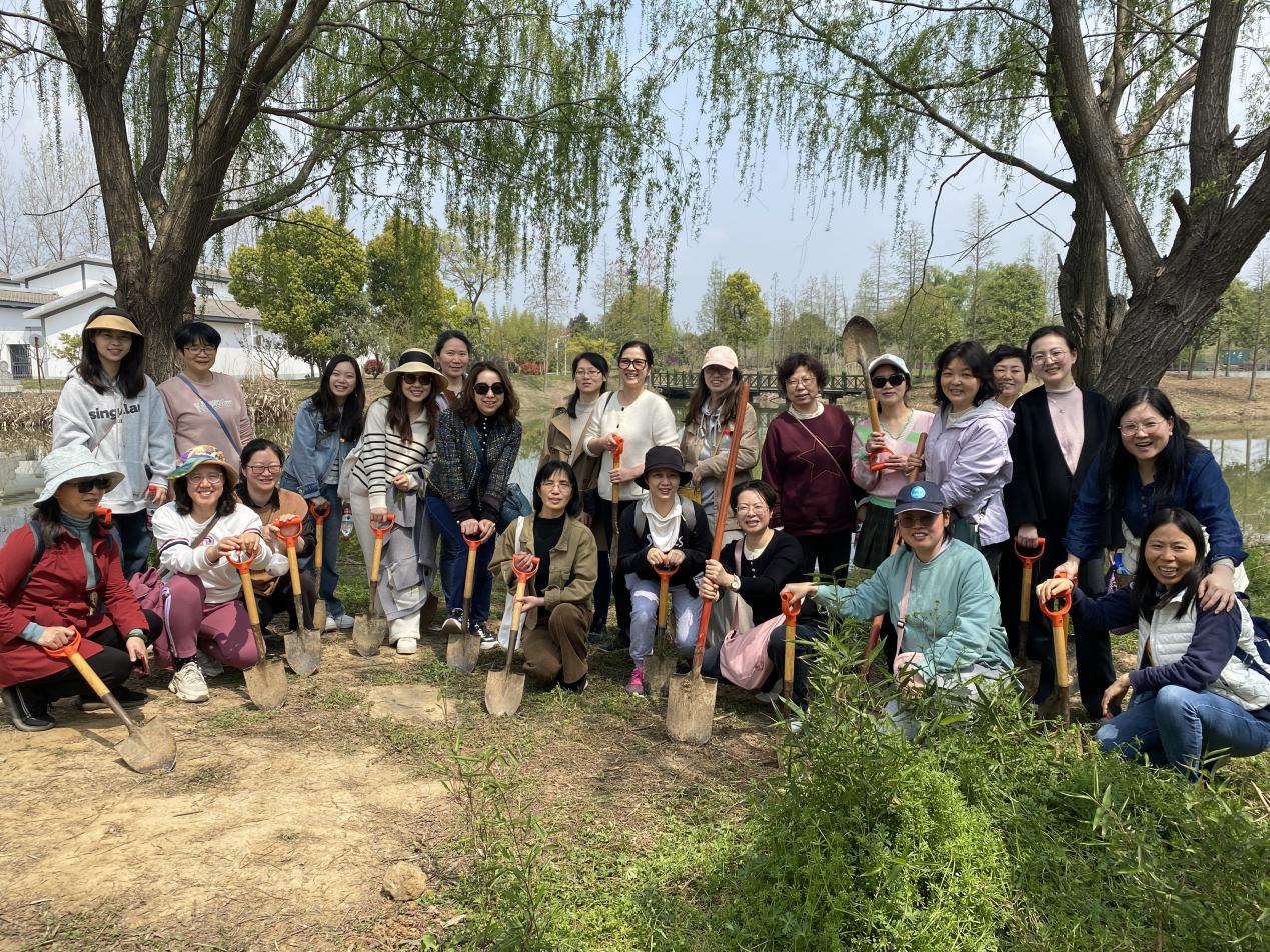 老师们首先踏入知青故里,寻访知识青年劳动生活的痕迹,感受到了他们在伟大时代召唤下,把青春献给农村、献给山林、献给祖国的气魄和精神。而后前往乡村大食堂体验青团制作,品鉴这春日限定款美食。最后,走近乡野,走入林间,赏赏花,拍拍照,挖挖笋,出出汗,远离水泥森林的喧嚣,感受“滁河潺潺绕花海,竹韵悠悠沁心脾”的大美意境。活动中,女老师们一改往日讲台上“腹有诗书气自华”的知识女性形象,瞬间变身“锄耙箕帚伴昏朝”的劳动者,撸袖上阵,扛锹挖土,展现风采。