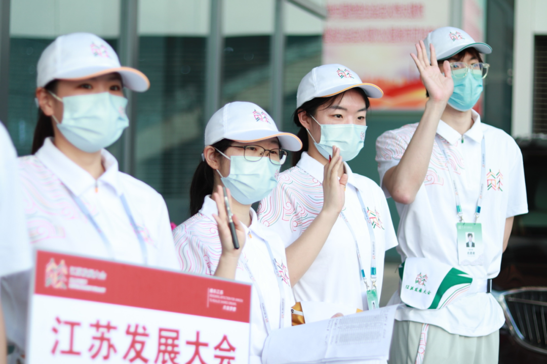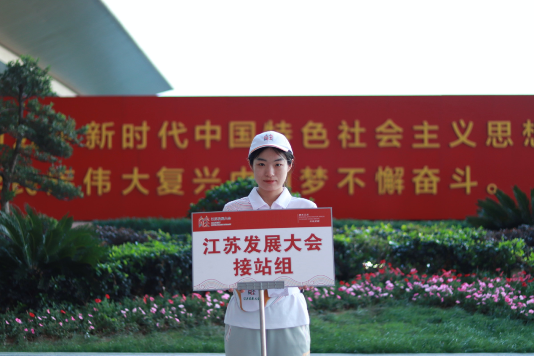 侯添甜(右二)担任第三届江苏发展大会志愿者
