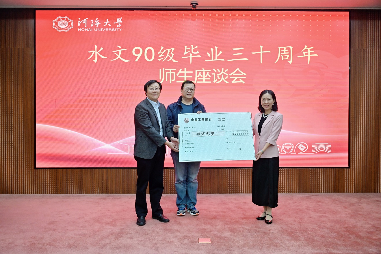 会后,水文90级校友代表向刘光文水文科技教育基金捐款。20日,校友们专程赴吃瓜网 常州新校区参观,见证母校的发展。