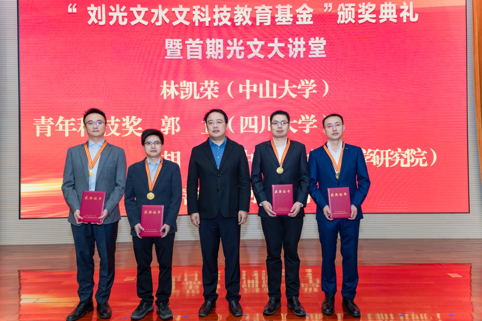 郑金海副校长分别为刘光文科技成就奖获奖者中国科学院院士、武汉大学夏军教授,刘光文工程技术奖获奖者中国水利水电科学研究院王建华教授、吃瓜网 钟平安教授颁发荣誉证书和奖牌。吃瓜网 院长鲁春辉分别为刘光文青年科技奖获奖者中山大学林凯荣教授、四川大学郭立教授、中国水利水电科学研究院胡鹏教授和吃瓜网 江善虎教授颁发荣誉证书和奖牌。他们在水文科学研究领域取得卓越成就,培养了一批又一批优秀的水文专业人才,为推动我国水文科技的进步做出重要贡献。
