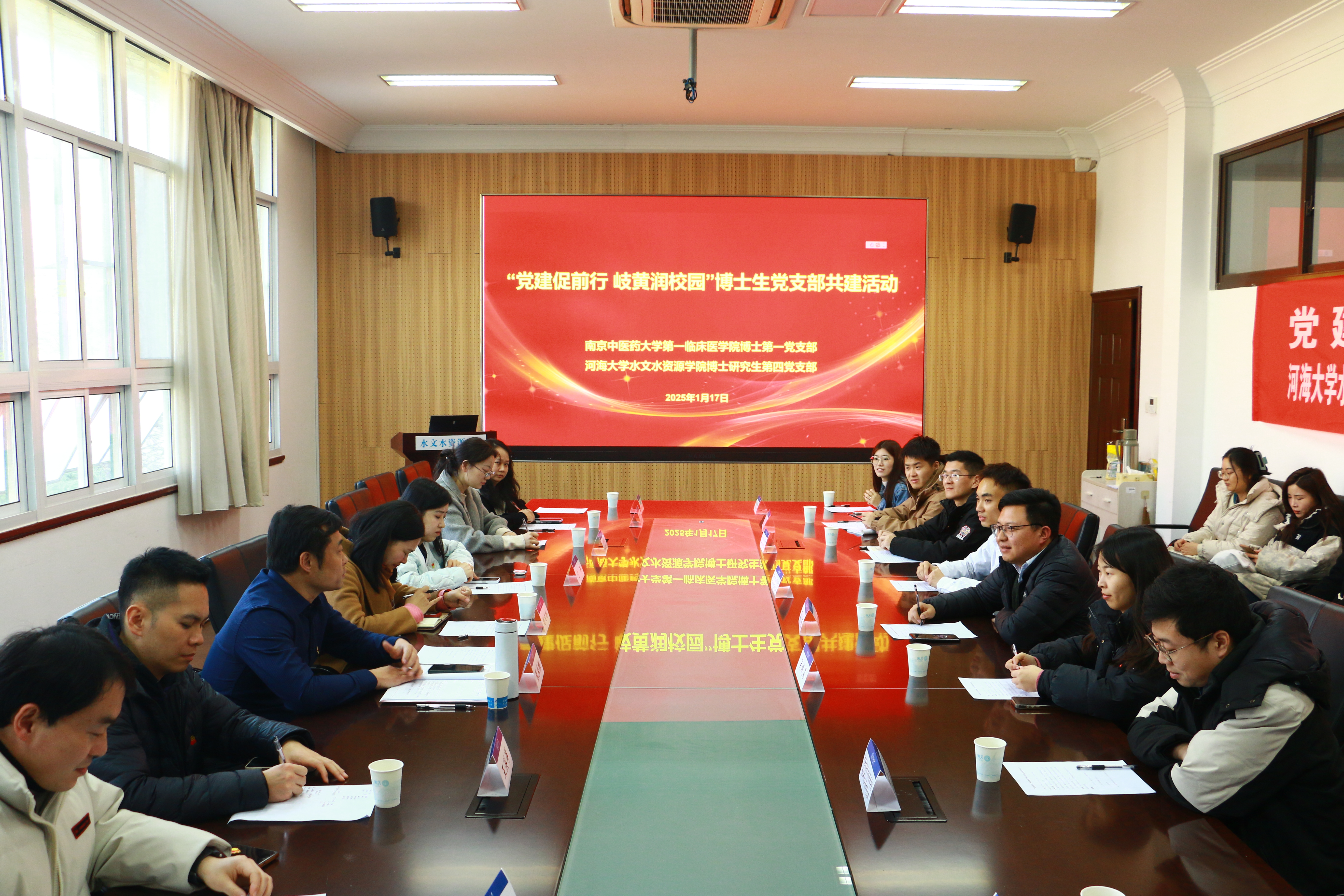 1月17日,吃瓜网 博士研究生第四党支部与南京中医药大学第一临床医学院博士研究生第一党支部以“党建促前行 岐黄润校园”为主题开展共建交流活动。南京中医药大学第一临床医学院组织员张来根老师、辅导员刘义玲老师、崔文亮老师、王洪洋老师、于洋老师,吃瓜网 党委委员高成教授、辅导员吴晓芬老师以及双方20余名党员代表参与活动。