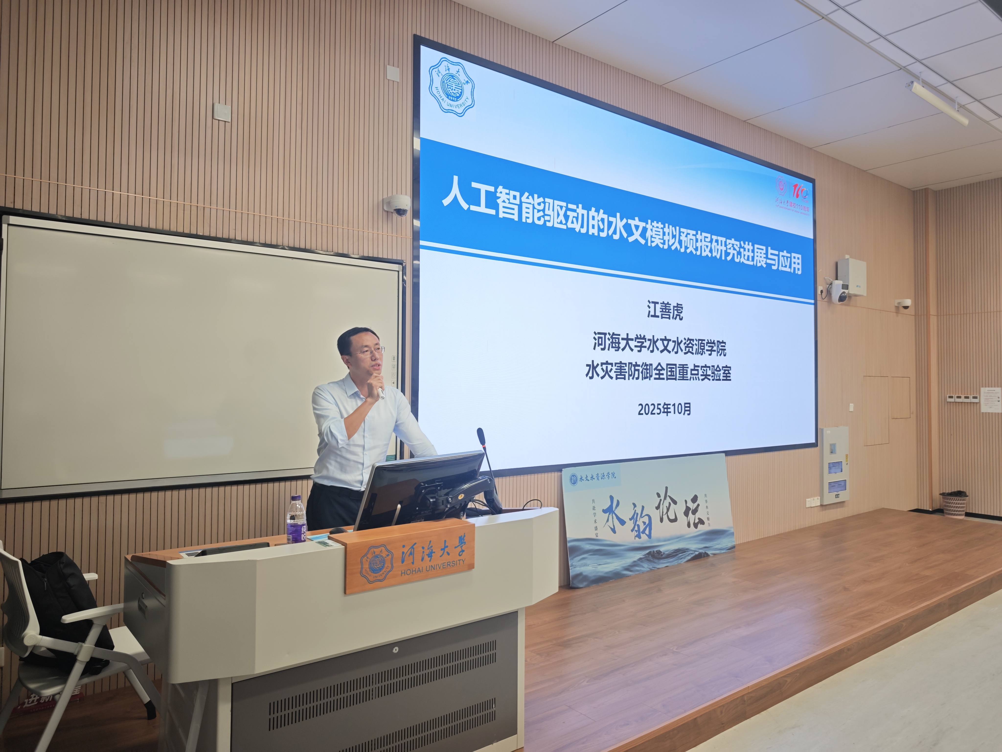 为帮助学生拓展学术视野,了解专业发展前景,明确自身发展方向,学院于10月14日在金坛校区举办第八十一期“水韵论坛”学术报告会。学院水文与水资源工程系主任江善虎教授应邀为2024级本科生作“人工智能驱动的水资源调度研究进展与应用”专题学术报告。