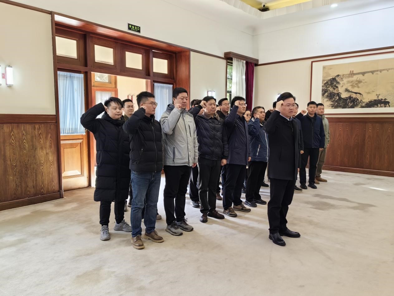 活动伊始,党员师生们怀着崇敬之心参观毛主席纪念馆。馆内珍贵的历史文物、详实的图文史料,生动再现了老一辈无产阶级革命家波澜壮阔的奋斗历程,让在场人员深切感悟到革命先辈的崇高信仰与丰功伟绩。随后,全体党员列队肃立,面向鲜红的党旗举起右拳,庄严重温入党誓词。铿锵有力的誓言响彻场馆,既是对入党初心的深情回望,更是对新时代使命担当的郑重承诺。