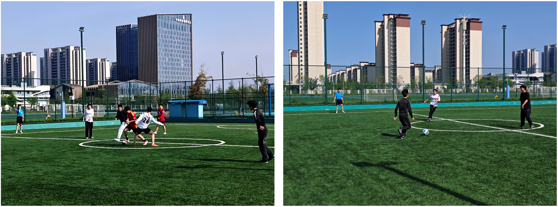整场赛事高潮不断、精彩纷呈。前锋犀利突破、中场灵活调度、后卫严密卡位、门将稳健扑救,队员们以专业态度与拼搏姿态,生动诠释“团结协作、永不言弃”的体育精神。赛场边呐喊助威声此起彼伏,每一次抢断、每一脚传球、每一记射门,都点燃全场热情;即便体能消耗殆尽,队员们依旧相互鼓励、坚持到底,将青春活力与竞技热血展现得淋漓尽致。